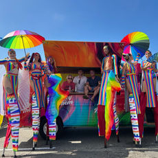 Cast, costume, and direct stilt walkers for 2022 and 2023 Pride parades and street fair activations